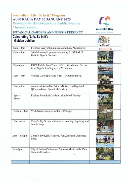Join us for an exuberant celebration of Australia Day 2025 at the Golden City Paddle Steamer Museum Society, where the spirit of community and heritage comes alive! This family-friendly event promises a day full of excitement, learning, and leisure—all completely free of charge!