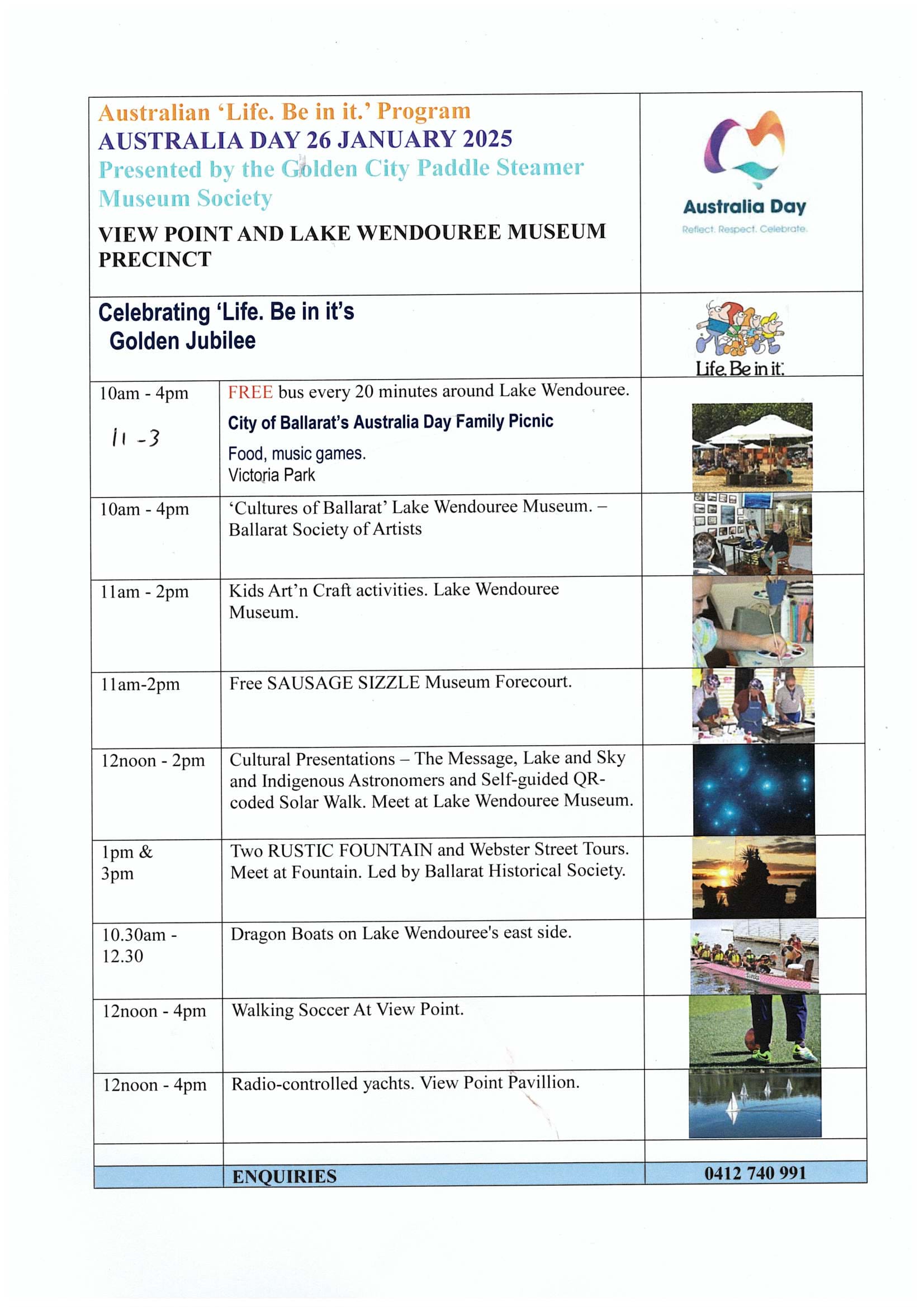 Join us for an exuberant celebration of Australia Day 2025 at the Golden City Paddle Steamer Museum Society, where the spirit of community and heritage comes alive! This family-friendly event promises a day full of excitement, learning, and leisure—all completely free of charge!